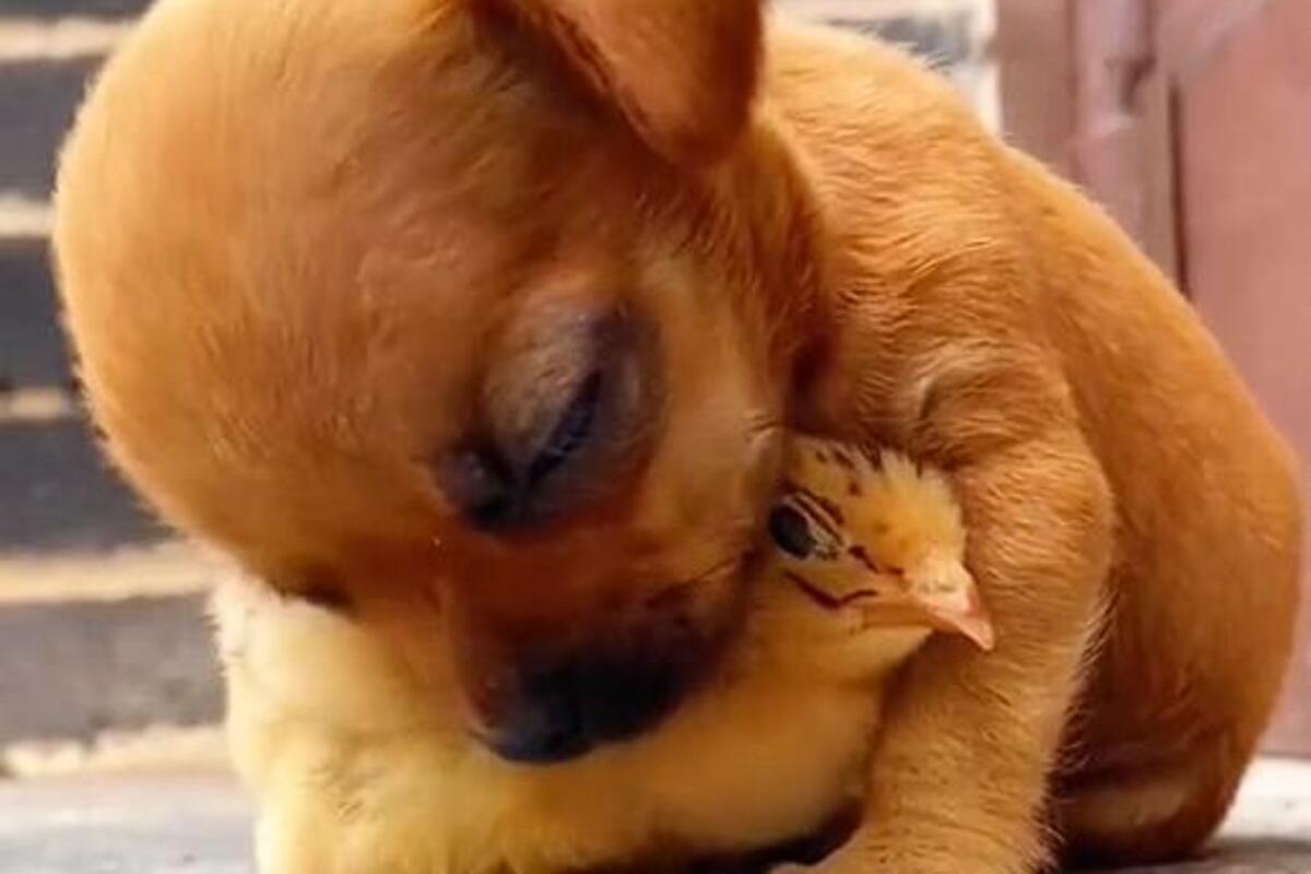 U videu koji vam delimo, pospani pas i pile razmenjuju nežnost tako što premalenom psu žuti drugar glumi jastuk.