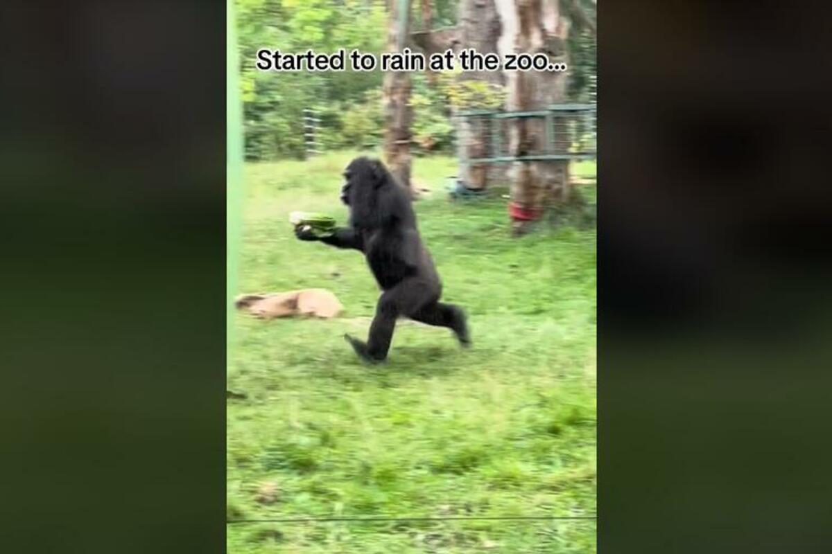 Viralni sinmak iz Zoo vrta u Londonu koji je zabeležila Molly Eliza, razuveriće vas. Na snimku se vide gorile koje su se haotično razbežale čim je počela kiša