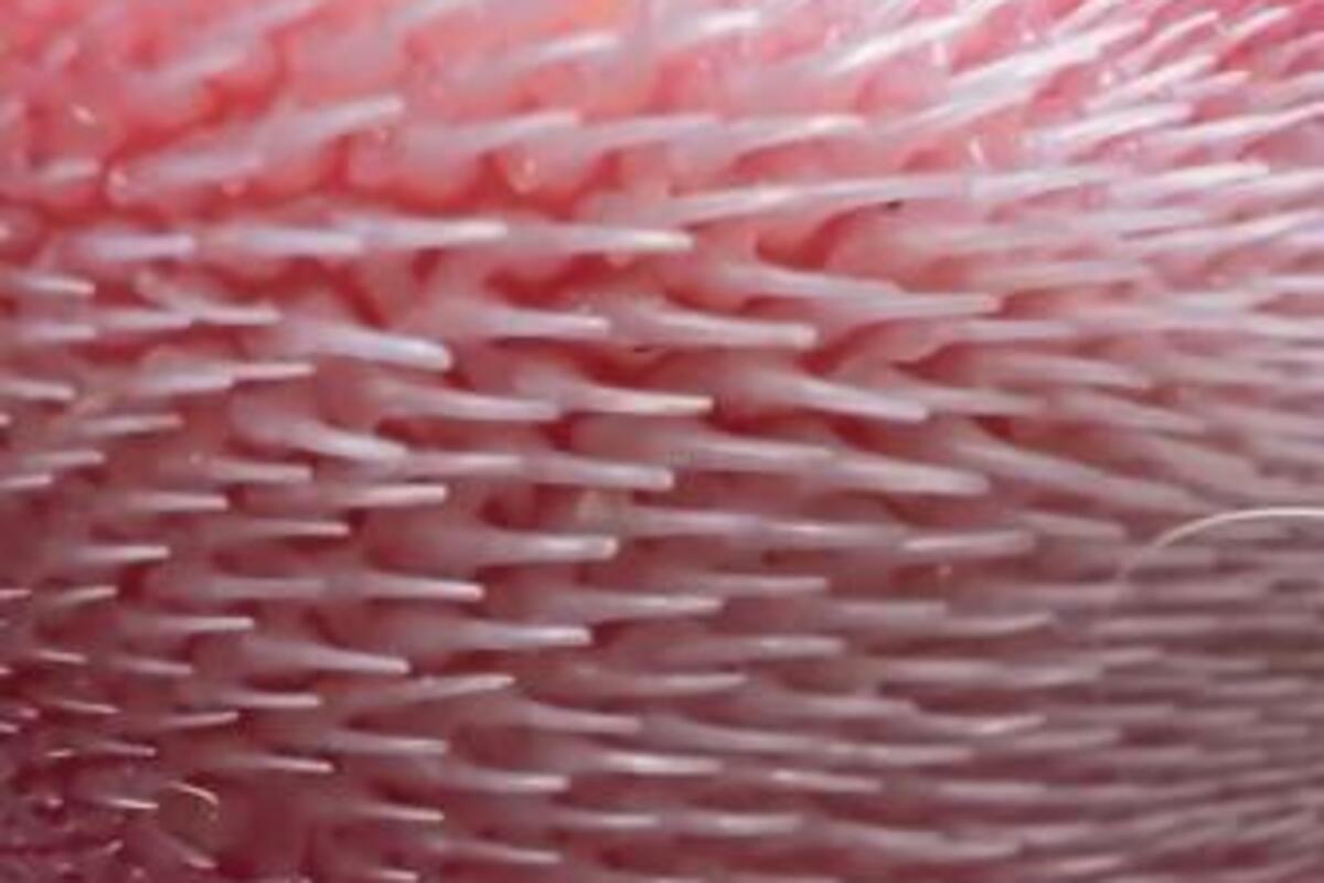 U prvom planu su takozvane papile, odnosno sićušne “kuke” okrenute prema unutrašnjosti usne duplje. Po sastavu su slične ljudskim noktima.