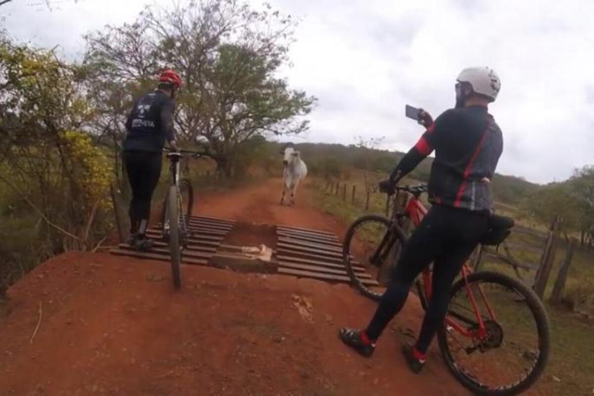 Uh, neprijatna situacija. Biciklisti u Brazilu, gde je napravljen snimak, naišli su na bika koji nije delovao raspoloženo za igru.