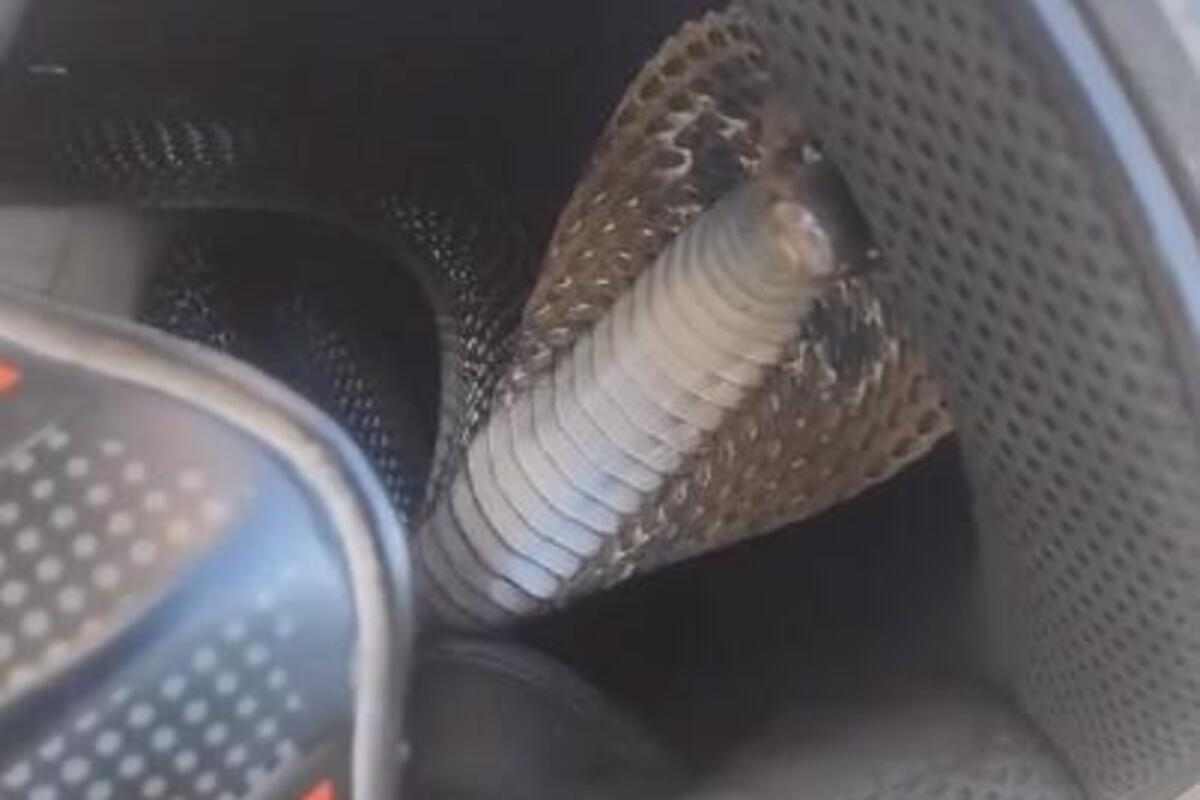 U početku je teško primetiti kobru, jer se njene šare podudaraju s presvlakom kacige. Detalji priče nisu poznati, a snimak je u kratkom roku pregledan više od 4,2 miliona puta, prenosi NDTV.