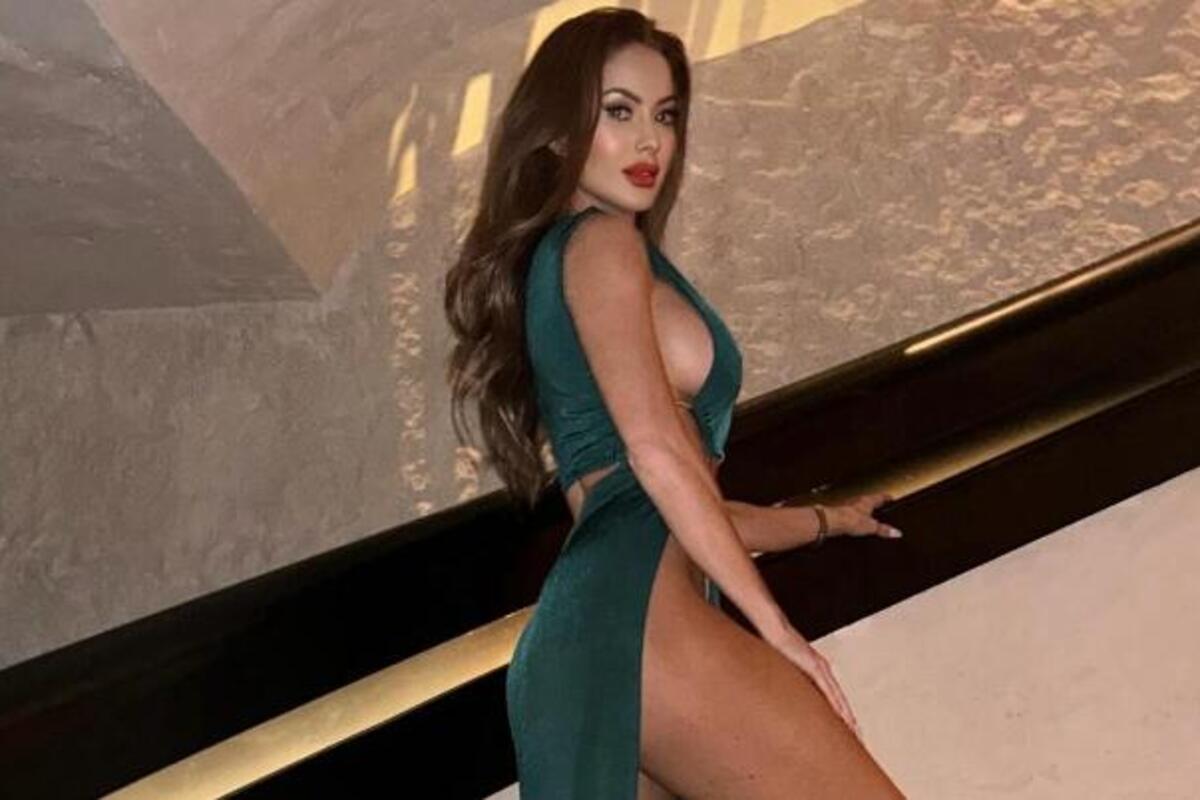 Kako se vidi, manekenka je nosila tamno zelenu toaletu koja, naizgled, pokriva telo, ali otkriva glavne adute - pozdinu, bujne grudi i još nešto...
