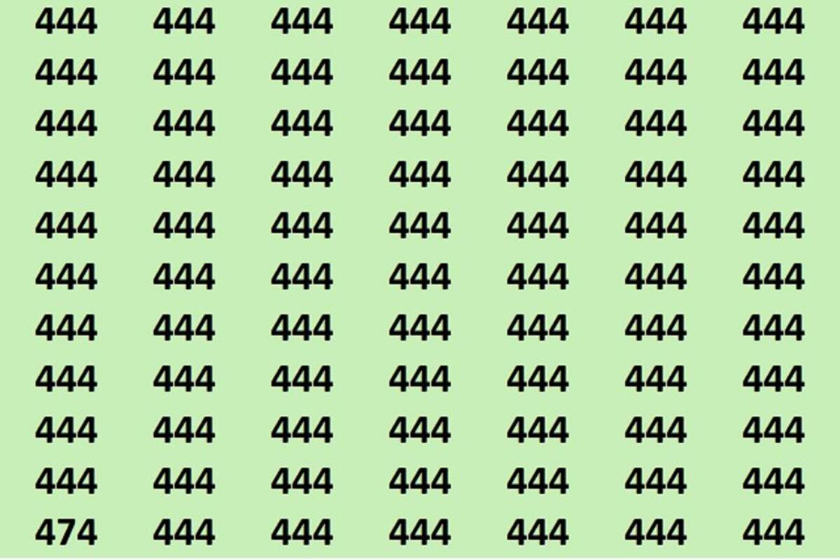 U ovoj mozgalici je potrebno da pronađete broj koji se razlikuje od ostalih. Očigledno je da se na slici nalazi broj 444 u svim kolonama i redovima, a na vama je da pronađete onaj koji ne pripada nizu.