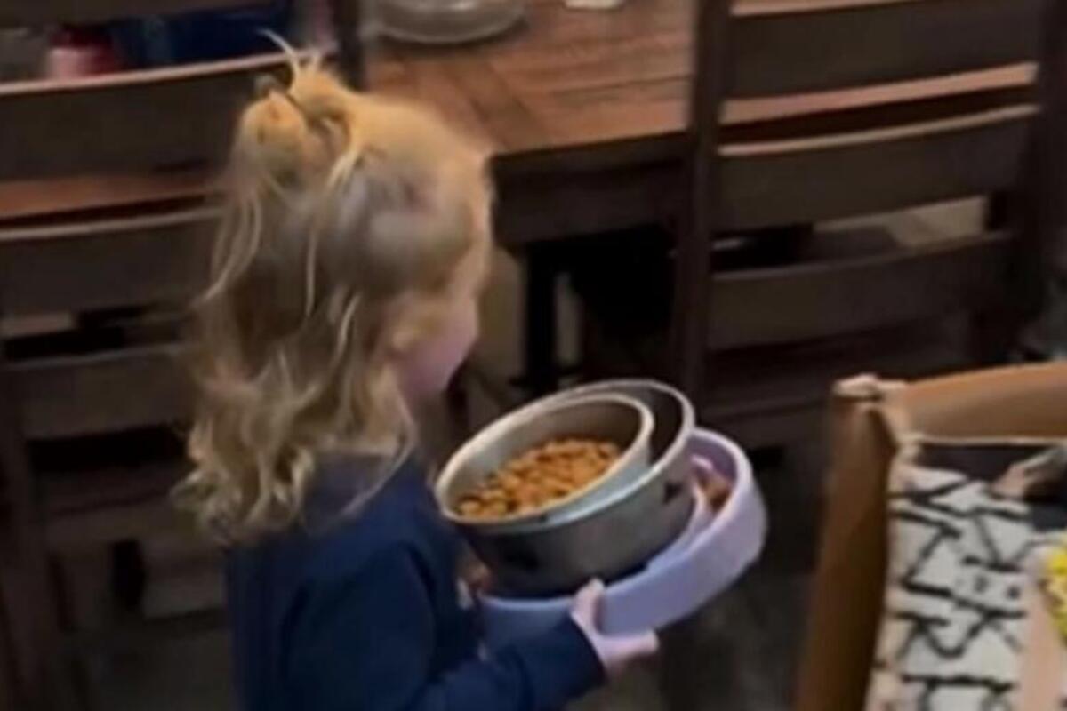 Jedan od takvih snimaka postao je viralan na društvenoj mreži Instagram. Malena plavokosa devojčica krenula je na trem, noseći u rukama tri posude sa hranom. Dva psa su je čekala na tremu, a jedan je bio sa njom u kući. Kako su joj ruke bile zauzete, jedan od roditelja pomogao joj je i otvorio vrata kako bi devojčica izašla na trem i iznela ljubimcima večeru.