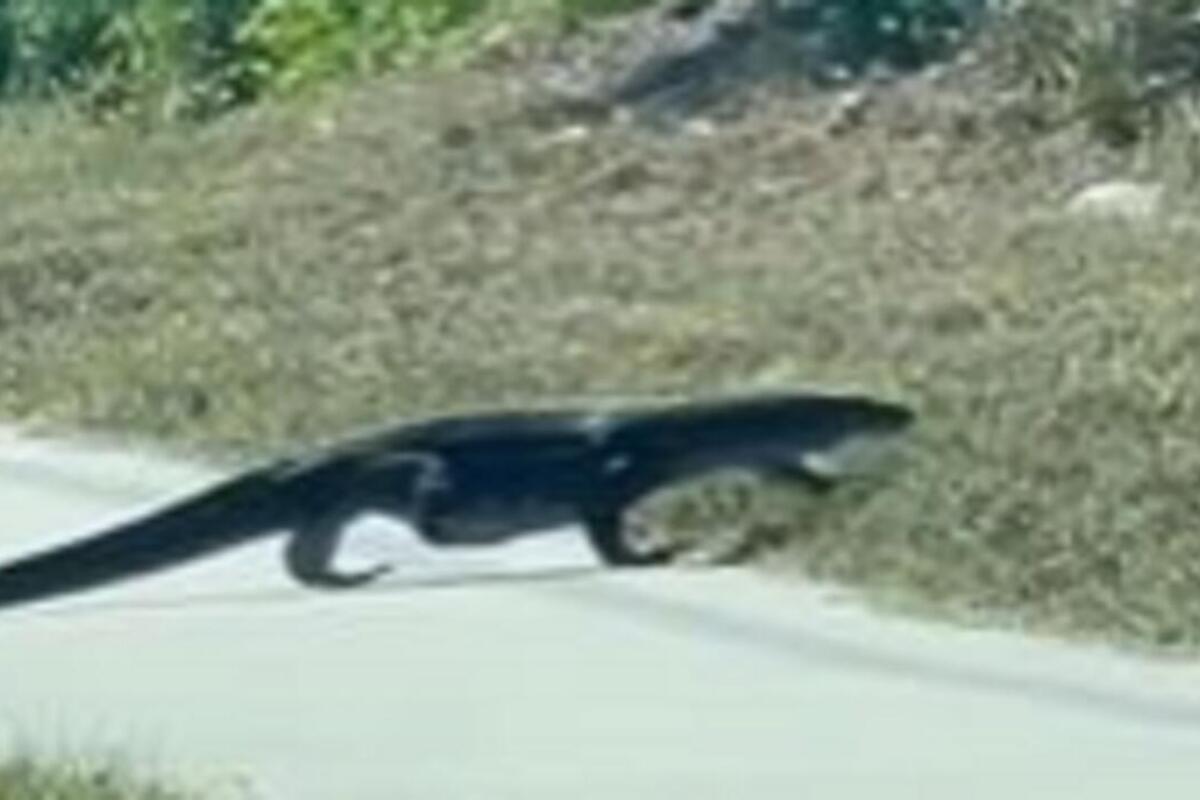 Masivni gušter dugačak 5 metara, za kog se pretpostavlja da je azijski posmatrač vode, nedavno je viđen kako hoda po prometnom putu u zapadnoj Floridi.