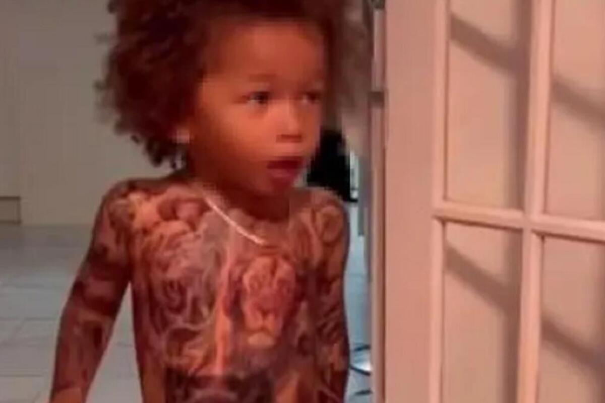 Roditelji su snimili i objavili snimak na kojem se vidi kako svom sinu koji nema više od 4 godine tetoviraju celo telo. Proces tetoviranja naravno nije trajan, jer je pravi postupak jako bolan i otac dečaka ga izvodi uz pomoć specijalne olovke, ali je efekat na kraju gotovo isti.