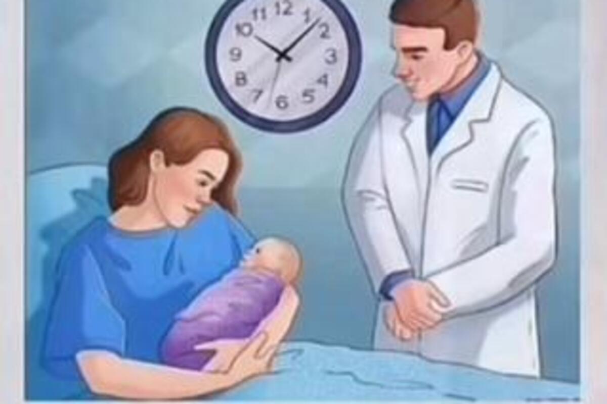 Naime, na ilustraciji su prikazani kako novopečena majka leži u bolničkom krevetu i drži bebu, a iznad njih stoji doktor.