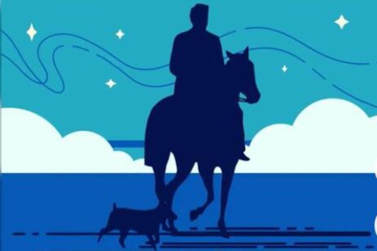 Slika prikazuje čoveka na konju sa psom pred nogama, ali sve zavisi od toga u kom pravcu vi vidite da konj hoda.