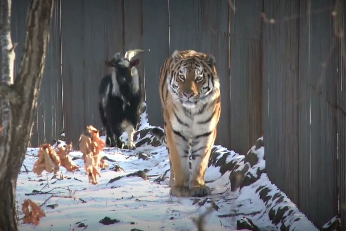 Tiger & goat friendshipOnly in Russia: Tiger befriends brave goat instead of eating it