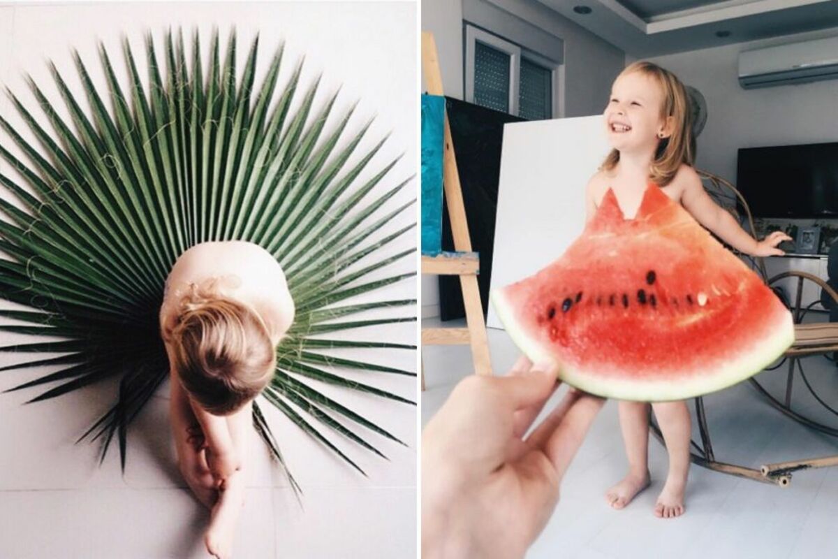 Koristeći moć perspektive, Čaglarova drži komade voća, povrća i cveća na određenoj poziciji i daljini, tako da pokriva malu Stefani čineći da izgleda kao da nosi glamuroznu haljinu ili suknju. Rezultat koji su dobile je zapanjujući, umetnički i sladak u isto vreme!
