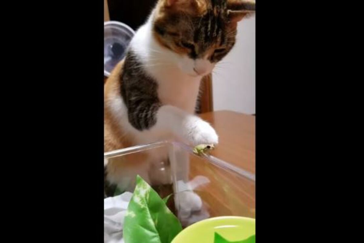 Radoznala mačka po imenu Rin-čan nedavno je dobila novog prijatelja - sićušnu žabu, a prihvatila ju je iznenađujuće dobro.