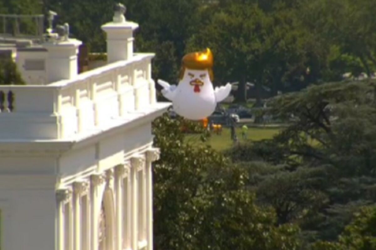 Džinovsko pile na naduvavanje, koje zbog specifične frizure neodoljivo podseća na američkog predsednika Donalda Trampa, pojavilo se na travnjaku nedaleko od Bele kuće.