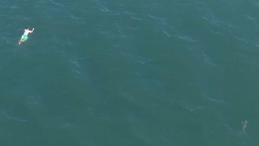 Ipak, nadzorna kamera na dronu pokazala je da policajci nisu bili jedino što ga je jurilo. Prema navodima Observera, ajkula od 1.5 metar bila je u jednom trenutku udaljena od Kingsburija dvadesetak metara.