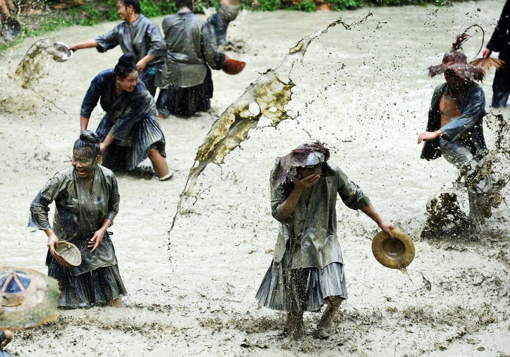 Šaman predvodi celu ceremoniju dok se ljudi gađaju i mažu blatom, koje predstavlja simboliku božanske molitve za mir, prosperitet i zdravlje.