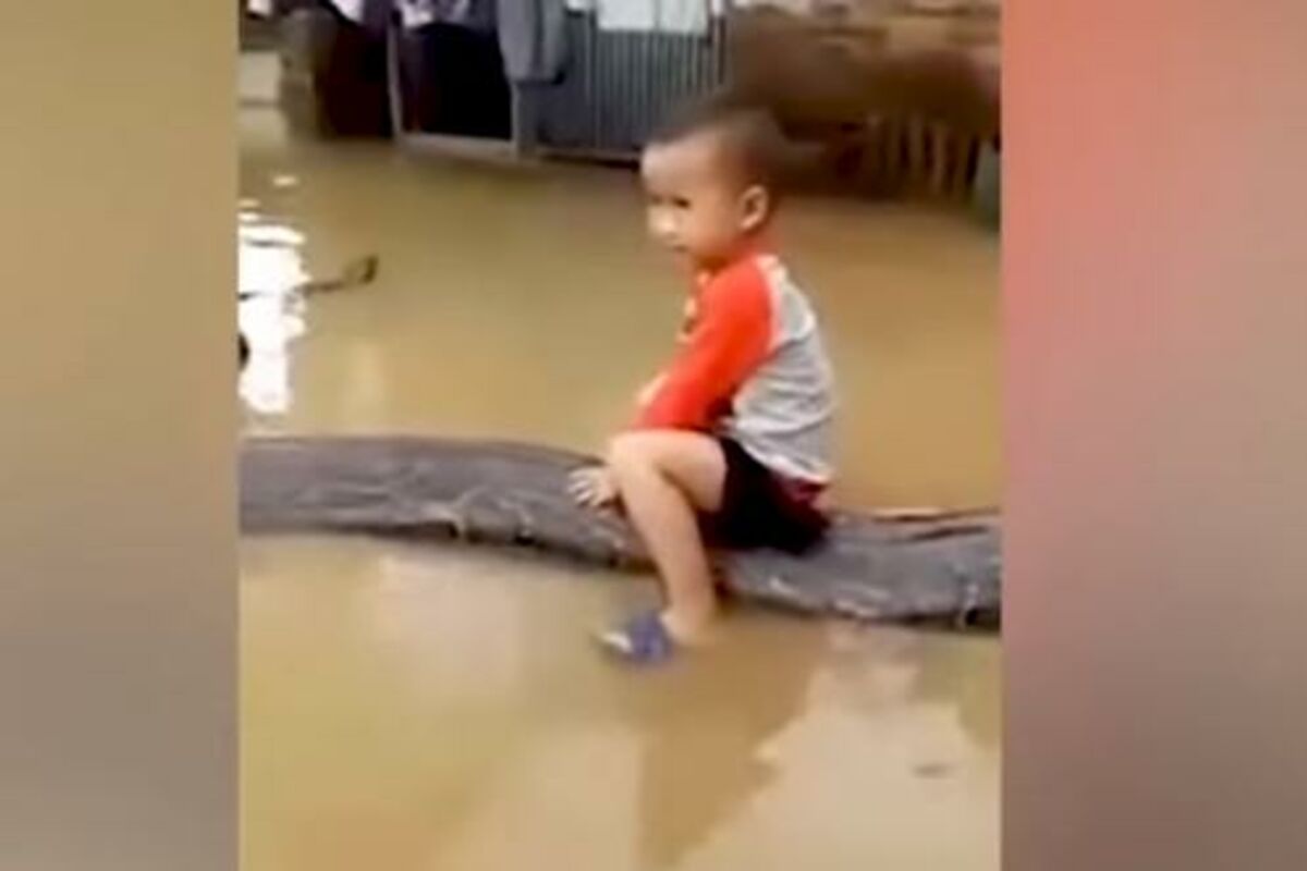 Poplave su odnele desetine života, ALI DEČAK NA PITONU JE ZAPANJIO SVET! (VIDEO)