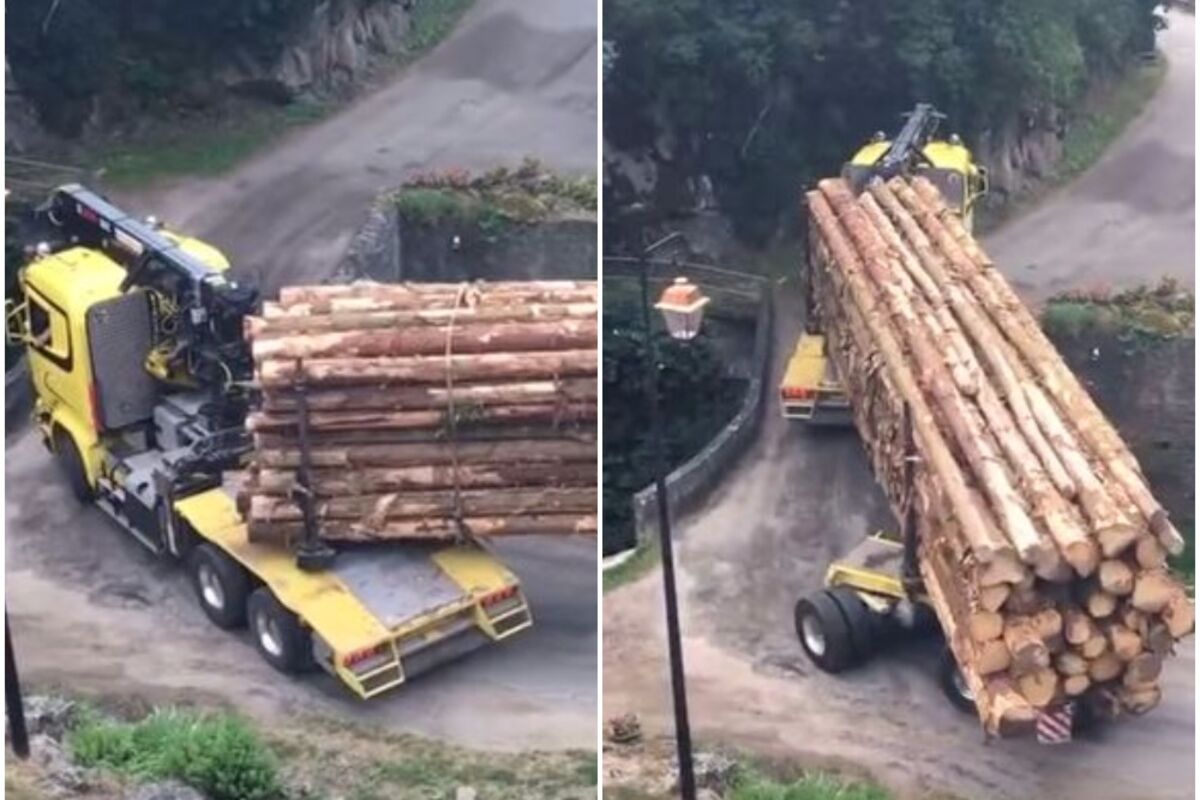 Kamion je iz dva dela, zadnje gume mogu da se rotiraju nezavisno od prvog dela, a ovaj vozač je uspeo da se okrene i preveze drva, iako je ova situacija delovala kao nemoguća misija.