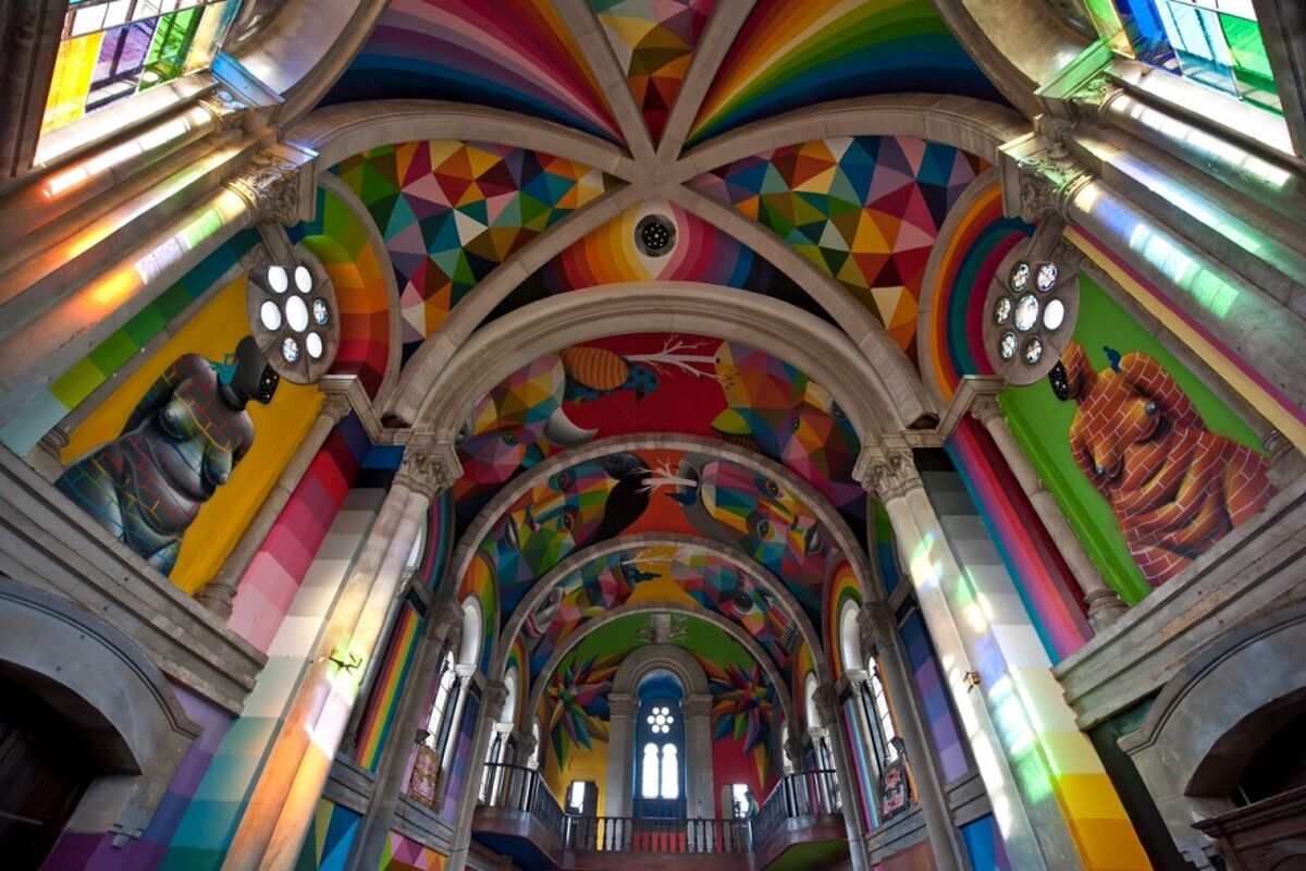 U saradnji sa Red Bulom, Okuda je transformisao crkvu neverovatnim svetlim i izometrijskim slikama. Njegovo legendarno delo Haos Zvezda, opisuju kao šarene i izometrijske ruže vetrova koje poručuju da nije bitno gde ste i šta radite, već da su jedino važni vaši lični ciljevi.