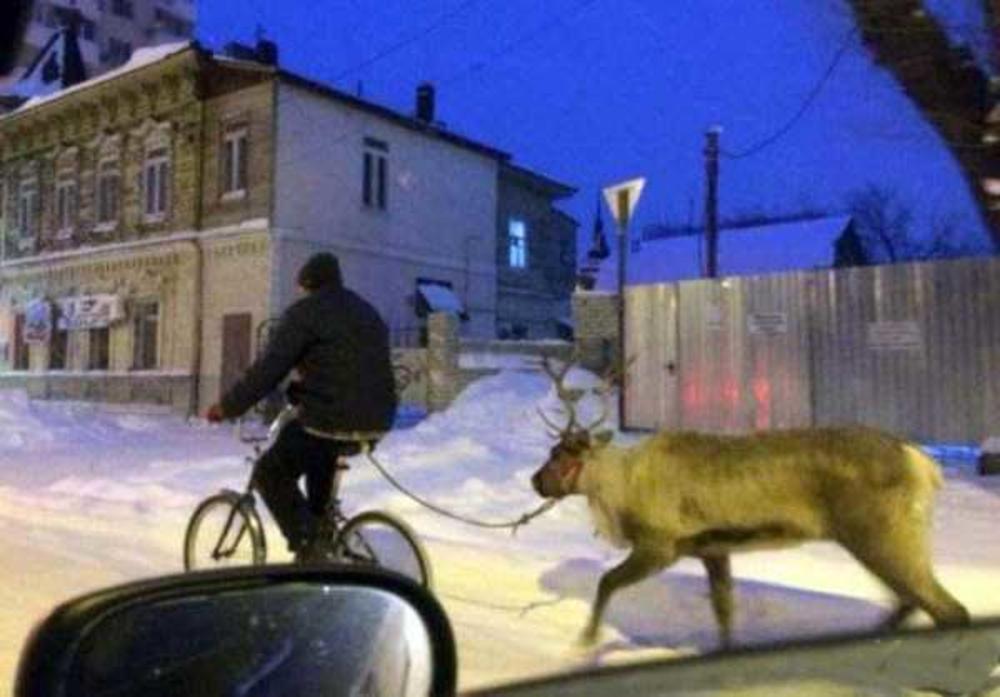 4. Vožnja biciklom sa irvasem. Jer, pas je u Rusiji prevaziđen.
