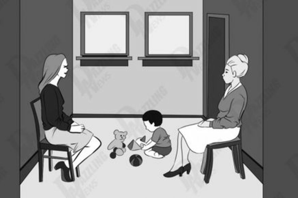 Na ilustraciji su dve žene koje sede jedna nasuprot druge. U sredini je dete u bezbrižnoj igri na podu. Pažljivo pogledajte tu scenu pa pokušajte da date odgovor: koja od žena je detetova majka?