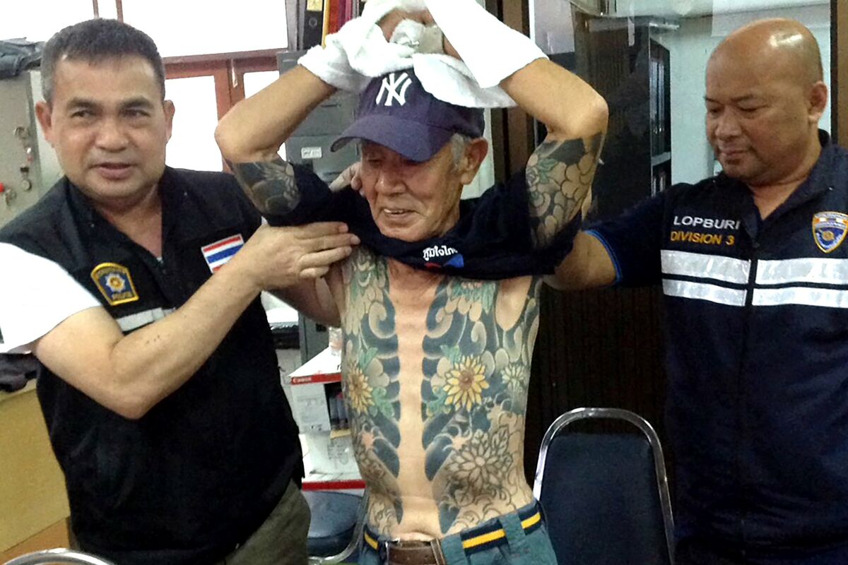 Vođa japanskih jakuza koji je 13 godina bio u bekstvu uhapšen je pomoću slika njegovog istetoviranog tela na internetu. Sedamdesetdvogodišnji Šigeharu Širaij, priveden je juče u Lopburi, gradiću u centru Tajlanda. - Osumnjičeni je priznao da je vodja pod grupe Jakuza Kodokai -,rekao je danas portparol tajlandske policije.