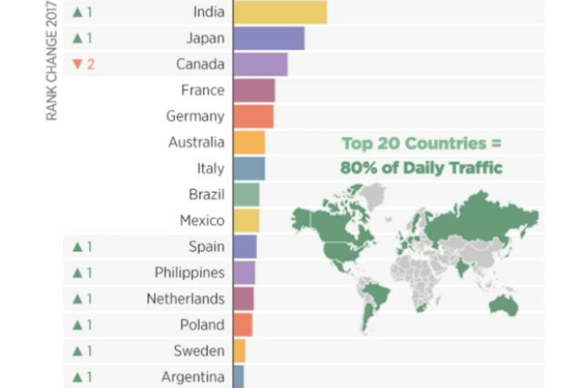 Top lista zemalja sa najvećim protokom internet saobraćaja