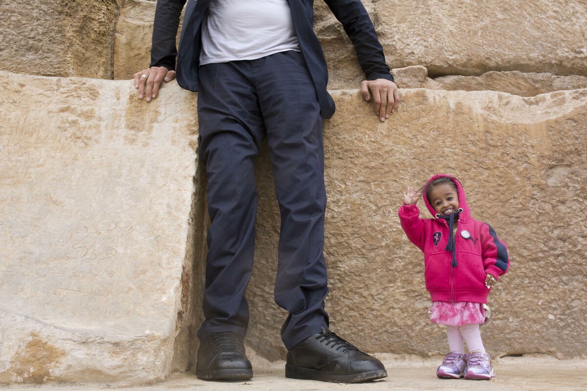 Kosen, visok neverovatnih 251 centimetara, stao je ispred piramida u Gizi pored Amge, čija visina iznosi samo 60 centimetara, i snimili zajedničku fotografiju.