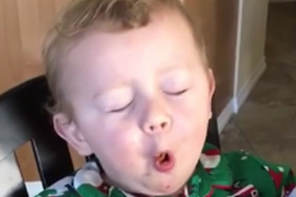 Jednogodišnji mališan Easton je na božićno jutro prvi put probao pečenu slaninu
