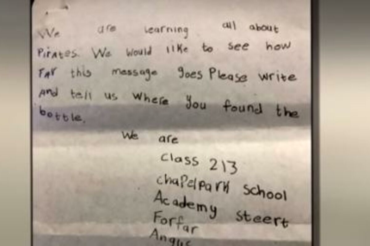 Pismo je napisao učesnik osnovne škole iz Škotske, koji je u to vreme učio o piratima pa je želeo da pošalje poruku u boci i vidi dokle će ona da ode.