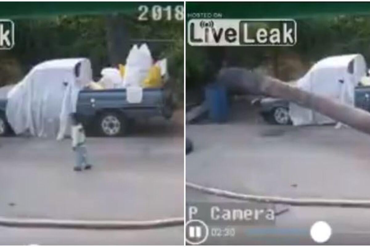 U jednom momentu sve je delovalo potpuno uobičajеno, na ulici је bilo više ljudi, među kojima i dosta dece. Jedno dete stajalo je nasred ulice, i baš u tom trenutku palo je ogromno stablo drveta, koje ga, na svu sreću, nije ni okrznulo.
