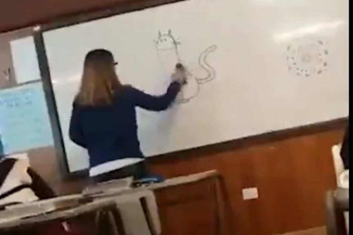 Naime, na tabli je bila nacrtana cica-maca, i učiteljica je krenula da briše tablu, kako bi je pripremila za predavanje.