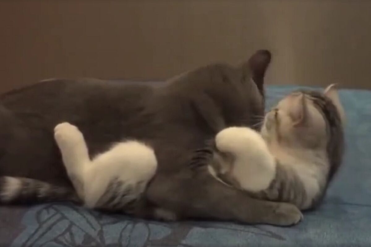 Ljubav je nešto najlepše na svetu, a ove mace su to samo potvrdile. Njima je sve lepše u dvoje, pa se tako i kupaju zajedno. Upoznajte Gospodina Piblsa - najmanju mačku na svetu! (FOTO) I dok se jedna umiva, druga joj liže stomak, a na kraju kao nagradu za kraljevski tretman dobija poljubac. Pogledajte ovo preslatko maženje: