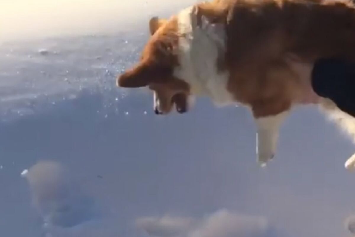 To se nije dogodilo, a da je pas Karma siguran, gledaoci su se uverili nekoliko sekundi kasnije kada upadne u sneg i veselo istrči iz njega.