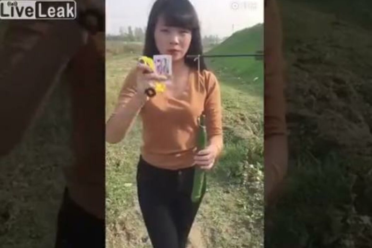 Naime, ona je napravila video u kome sa određene razdaljine gađa veliki krastavac koji visi.