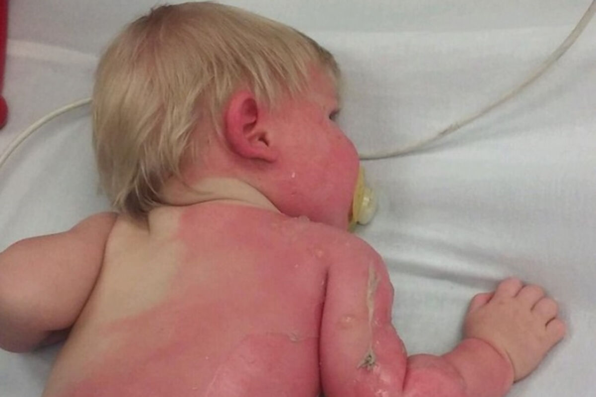 Na fotografiji se vide opekotine koje je nesrećni dečak od vruće vode zadobio na torzu i licu. Kada se voda u crevu zagreje na 60 stepeni može izazvati opekotine trećeg stepena samo pet sekundi nakon dolaska u kontakt s kožom.