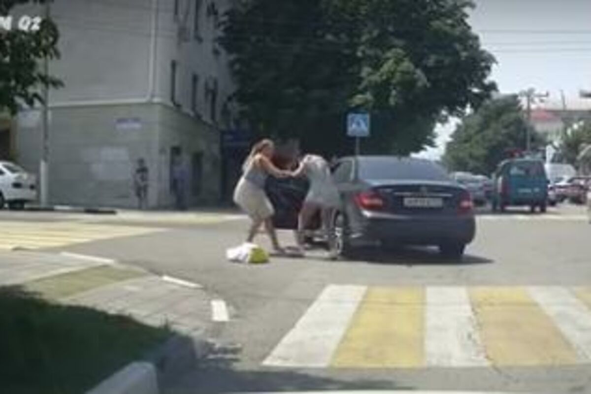 Nije se baš najbolje provela jer ju je nakon kraćeg udaranja rukama pešakinja zgrabila za kosu, na šta je iz Mercedesa izašla još jedna žena kako bi pomogla prijateljici.