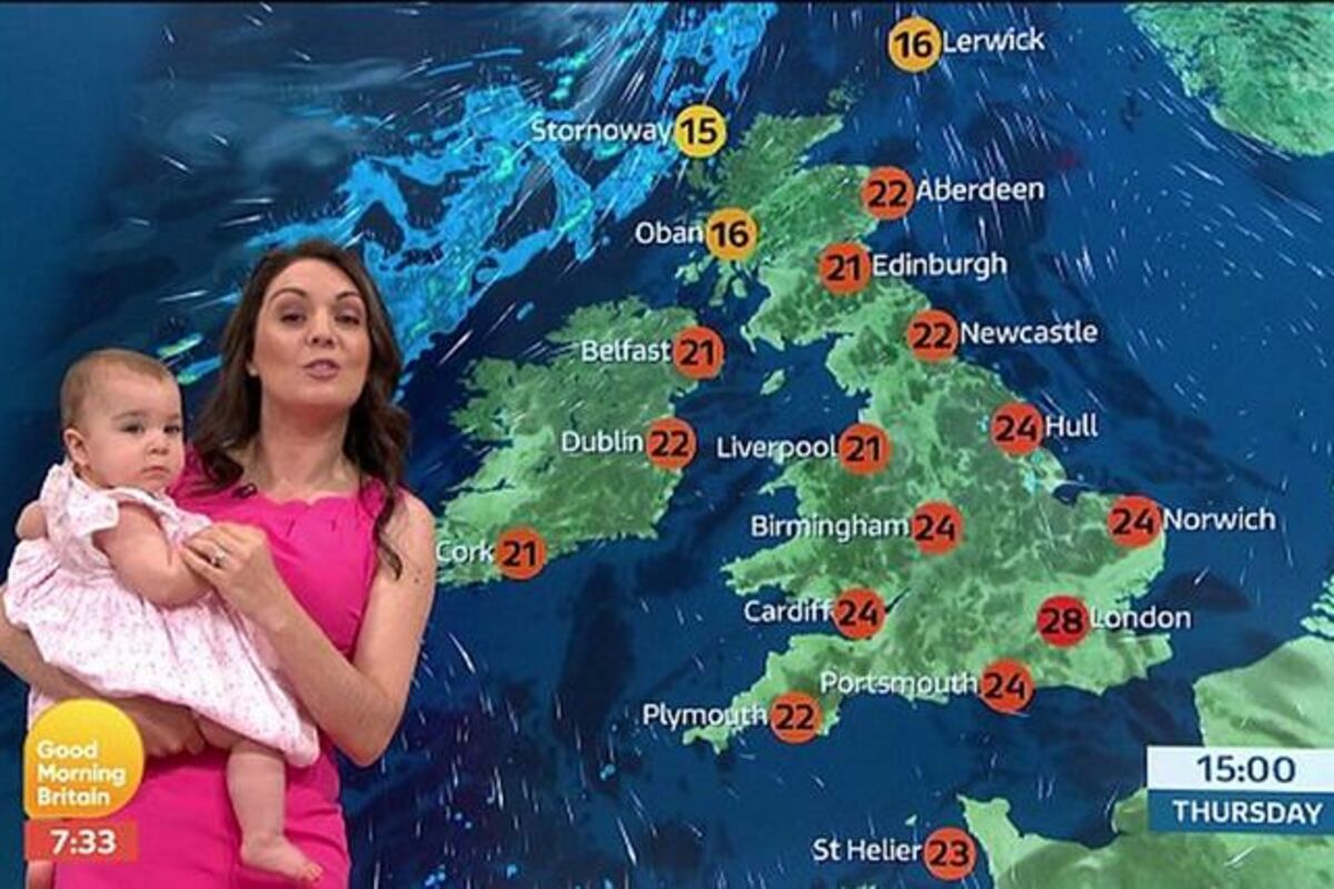 Britanka voditeljka vremenske prognoze, Laura Tobin, iznenadila je gledaoce emisije Good Morning, Britain kad se tokom vremenske prognoze pojavila s bebom u naručju.