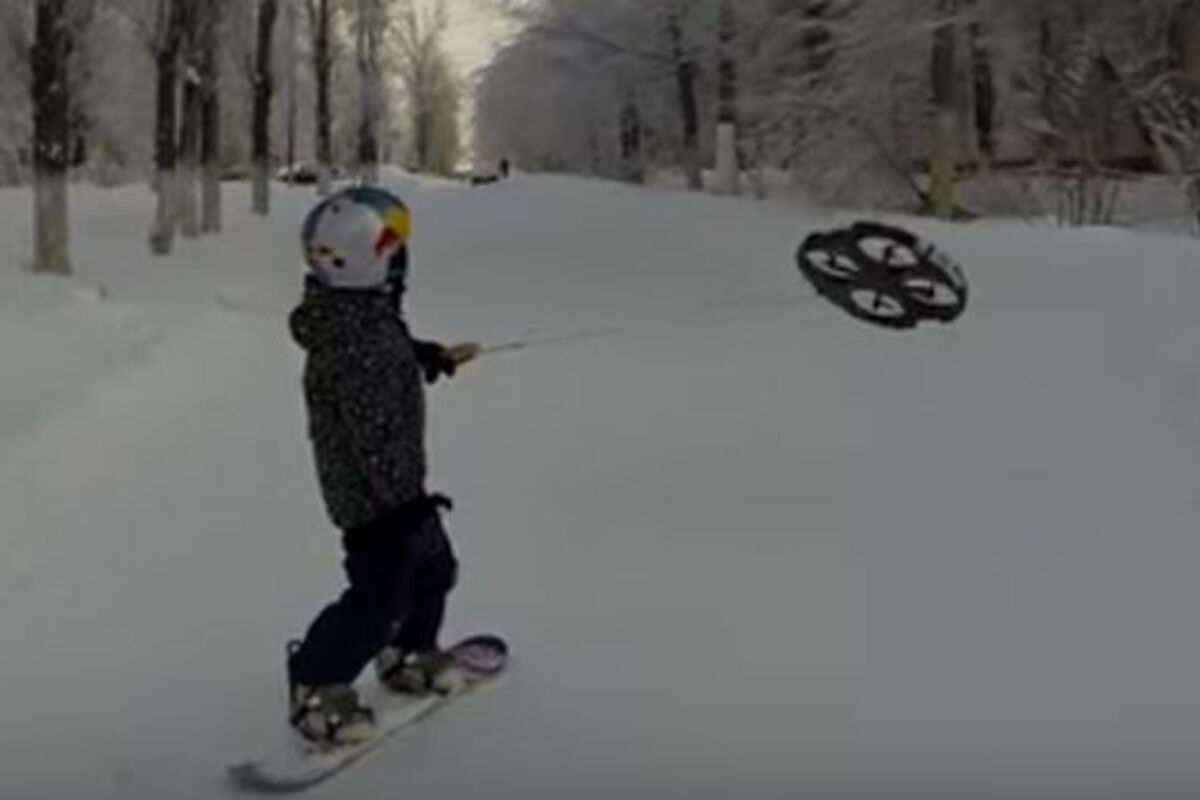 Uz šaljiv naslov "Dronbording zahteva veće dronove ili manje ljude" sajt The Verge prikazuje malog vozača daske koji se ne kreće previše brzo, uz konstataciju da ni baterije drona ne mogu da izdrže Eskplozija boja, noć i sneg: Skijanje kakvo do sada niste videli (FOTO) (VIDEO) Skijaše će vući dronovi, predviđa korsinik interneta koji je na Jutjubu postavio snimak na kojem dron vuče na snoubordu duž. Ipak, to bi moglo da bude začetak jedne nove ere u kojoj će se ljudi po snegu kretati uz pomoć bespilotnih letećih sprava.