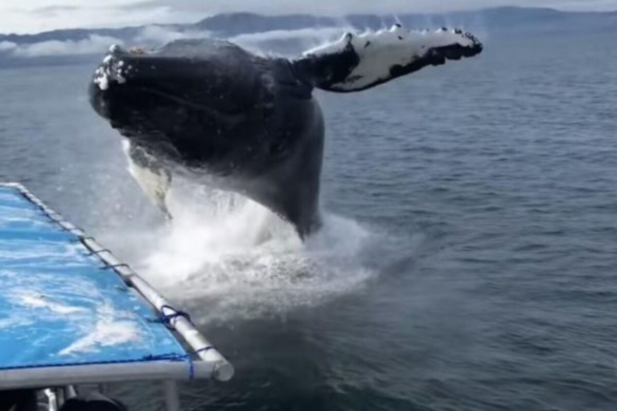 Naime, na snimku koji je obišao svet, možemo da vidimo kako nekoliko kitova pliva u daljini. Sve deluje lepo i mirno, do momenta kada odjednom iz vode iskače morska neman kako bi udahnula vazduh. Kit je zapljusnuo ljude, a brodić na kome su se nalazili avanturisti samo što se nije prevrnuo.