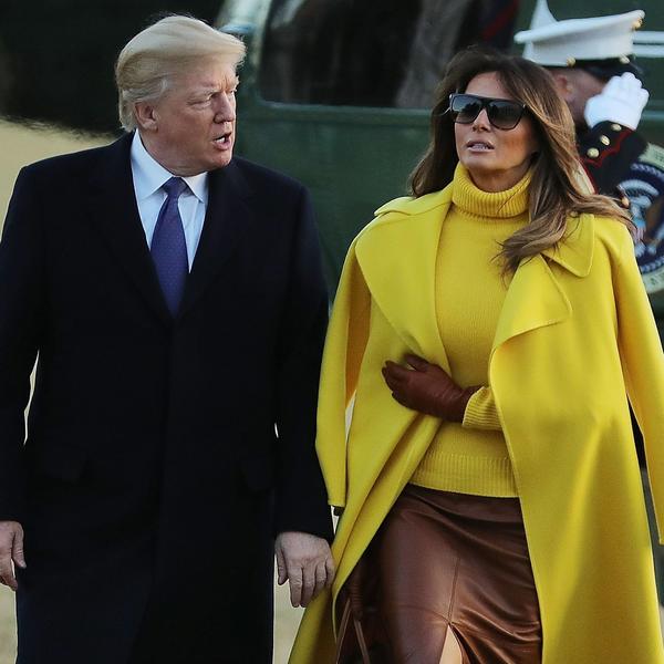 Melanija je za ovu priliku odabrala pastelne boje - cvetnu Valentino suknju i bluzu bez rukava i Lubutinove potpetice