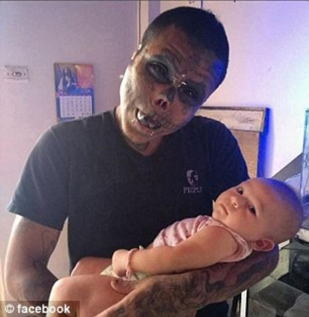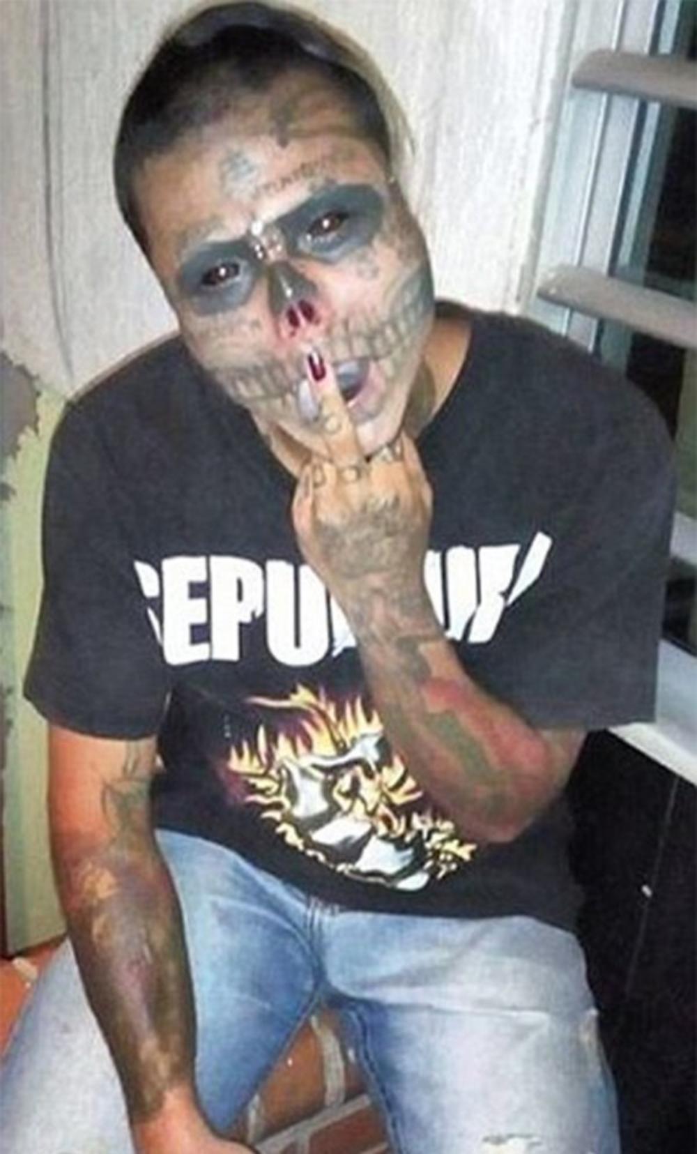 Ali nije se tu zaustavio. Istetovirani tatu majstor presekao je svoj jezik na dva dela i istetovirao ga u plavo-sivoj boji. Promenio je izgled svoje glave i na obraze istetovirao dve crne rupe.