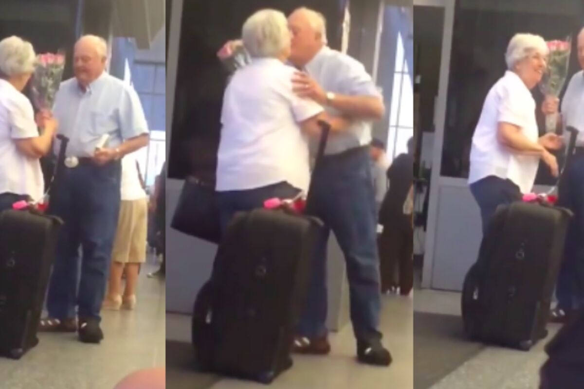 Anonimni autor tajno je snimio scenu na aerodromu gde stariji čovek čeka nekog sa buketom cveća. Njegova supruga pojavila nešto kasnije... Pogledajte kako je izgledao njihov susret: