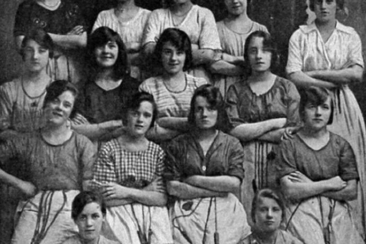 Na slici se vidi 15 radnica kako poziraju ispred kamere, prekrštenih ruku.