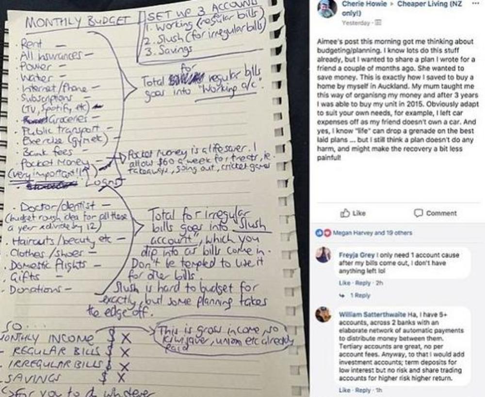 Novozelanđanka Čeri Hovi okačila je u jednoj Fejsbuk grupi svoj plan štednje koji joj je omogućio da u samo tri godine uštedi dovoljno da kupi stan.