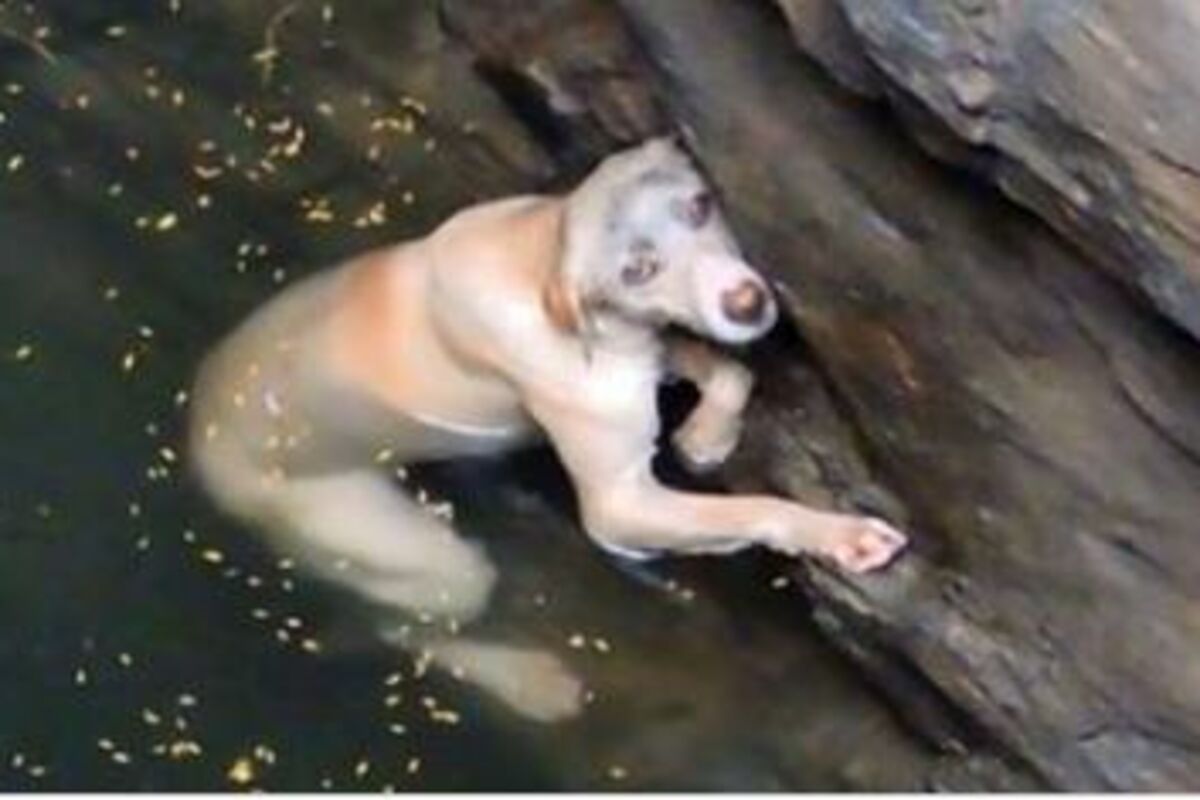 Jadno kuče je gubilo snagu i jedva se pridržavalo uz bočni zid, a da nisu spasioci stigli verovatno ne bi izdržao još dugo. Spasioci su bili ekipa iz udruženja za pomoć životinjama, Animal Aid.