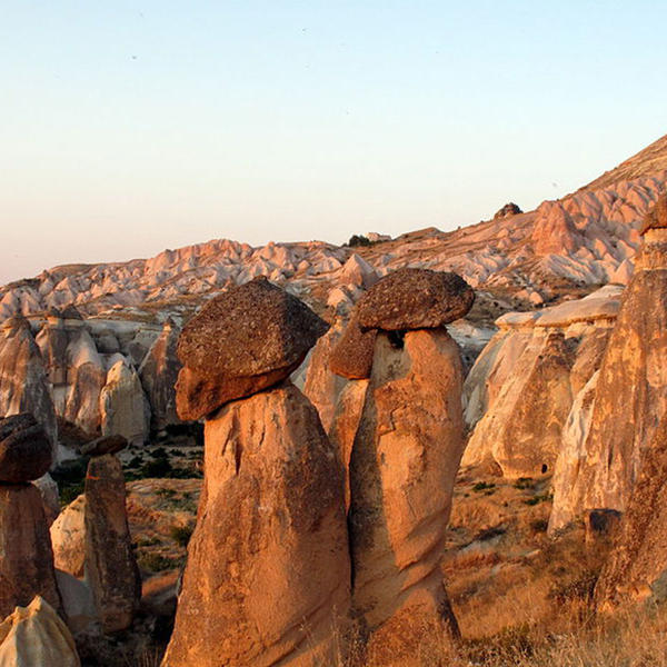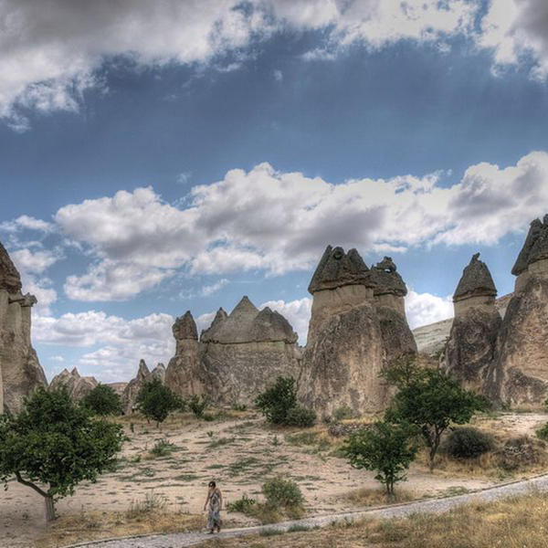 Gusti pepeo iz drevnih vulkanskih erupcija je učvrstio mekši kamen: vetar i voda su učinila svoje na ovom terenu ostavljajući za sobom pejzaže kao iz bajke koja se protežu 40 metara u nebo. Onda su ljudi izgradili pećine, a podzemni tuneli su toliko kompleksni da čine čitave podzemne gradove.
