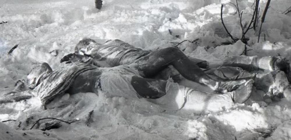 Sledili su tragove u snegu koje su napravili bosonogi planinari, trčeći u nepoznatom smeru na temperaturi - 22. Na rubi šume uskoro su pronađena dva muškarca u donjem rublju, smrznuta. Zapalili su malenu vatru ali nije im pomoglo da se održe u životu. Još tri tela, među njima i Djatlov, pronađeni su na putu natrag prema šatorima. Meseci su prošli i proleće je došlo kada su pronađena tela ostalih četiri planinara. Bili su toplo obučeni u odeću svojih prijatelja koji su pronađeni na rubu šume u donjem rublju. Čini se kako su bili izvan šatora kada su napadnuti, ali zašto su nosili tuđu odeću? Izvađene su im oči, iščupani jezici, slomljena rebra i nagnječen mozak iako spoljnih ozleda nisu imali. Autopsija je pokazala da su izloženi nekom radioaktivnom materijalu, što vlasti nikada nisu htele da komentarišu.