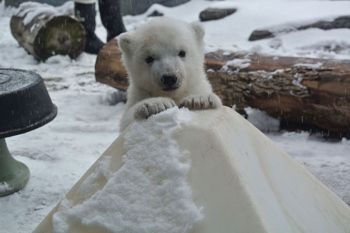 Ona ima samo tri meseca, živi u zoološkom vrtu u Torontu, a kada je prvi put videla sneg istopila je na hiljade srca širom sveta. Radoznala polarna medvedica se prvo pažljivo držala za deblo, a onda je srećno sišla na zemlju i počela da skakuće i oseća čari za nju nepoznatog tla.