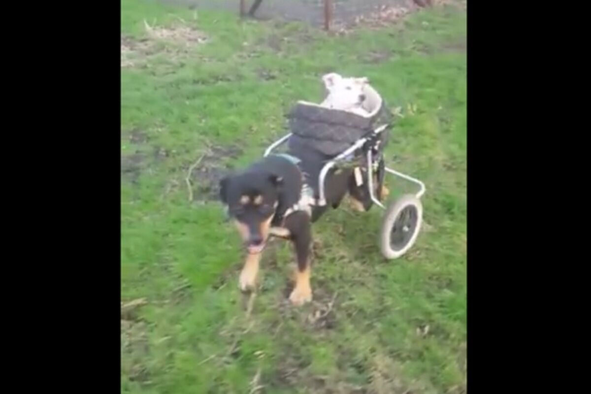 Pas u kolicima svakog dana vozi slepog i gluvog drugara (VIDEO)