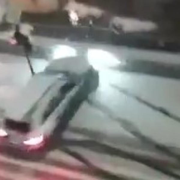 Žena je snimljena kako beži od nadolazećeg kamiona koji je uništio automobile u blizini kojih se nalazila.