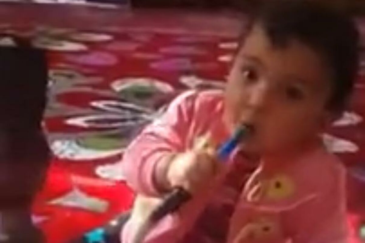 To je i pošlo za rukom jednom ocu iz Iraka, čije dete očigedno voli da puši iz nargile?! Ćaletu je sve to bilo smešno, pa je rešio i da snimi čitavu situaciju. Prvo vidimo dete kako plače i traži da malo "pirne", a potom kako udiše i izdiše dim, i buni se i na samu pomisao da otac uzme cevku nazad.